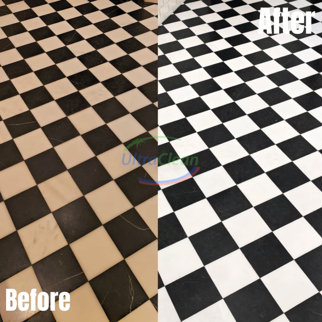 If your grout lines still look dark or stained after regular mopping and scrubbing, it usually means dirt has become embedded deep within the grout. Professional cleaning is often needed to fully restore the surface.